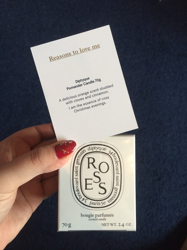You may remember I got this small Diptique candle in my Liberty advent calendar and couldn’t wait to use it as I’ve never had one of these before (couldn’t justify spending Β£24 on a tiny candle!) I got round to using it this weekend and it was a big disappointment to be honest!! The scent could only be detected when you were literally standing above it, and unlike some other candles I’ve had, it burned out within 2-3 evenings of usage… needless to say I wouldn’t recommend this particular one. I will be trying the Baies and Oud ones soon so let’s see if they are any better – but in the meantime I’d recommend sticking with Molton Brown or Jo Malone candles. In fact, anything but this one…